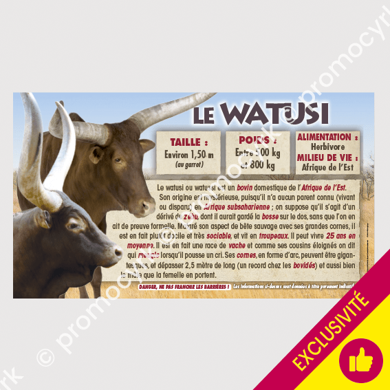 Autocollants infos animaux “le Watusi” 70 x 40 cm