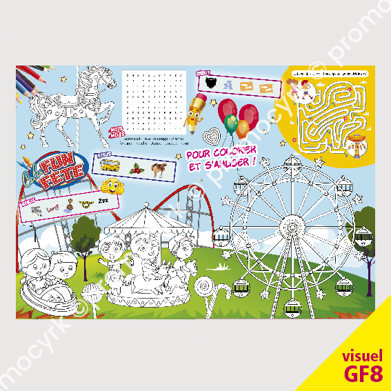 Lors de l’inauguration de la fête ou des journées animations et promos, un moyen de communication participatif tout en s’amusant, avec jeux et coloriages